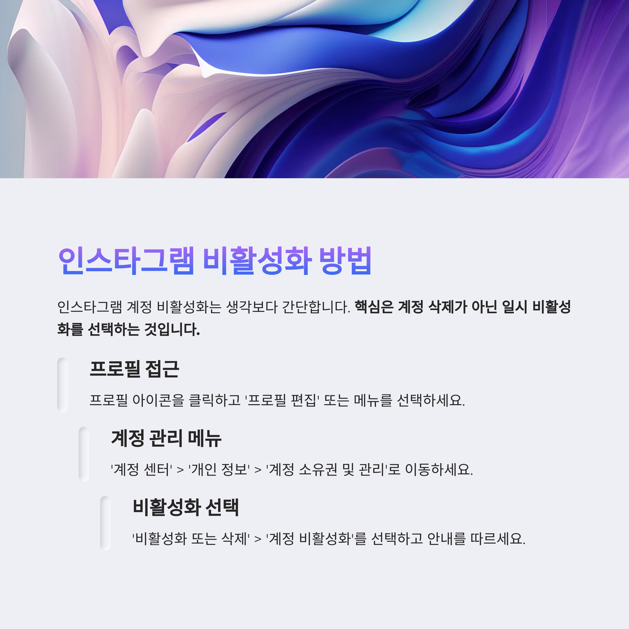 핵심은 계정 삭제가 아닌 일시 비활성화를 선택하는 것입니다.