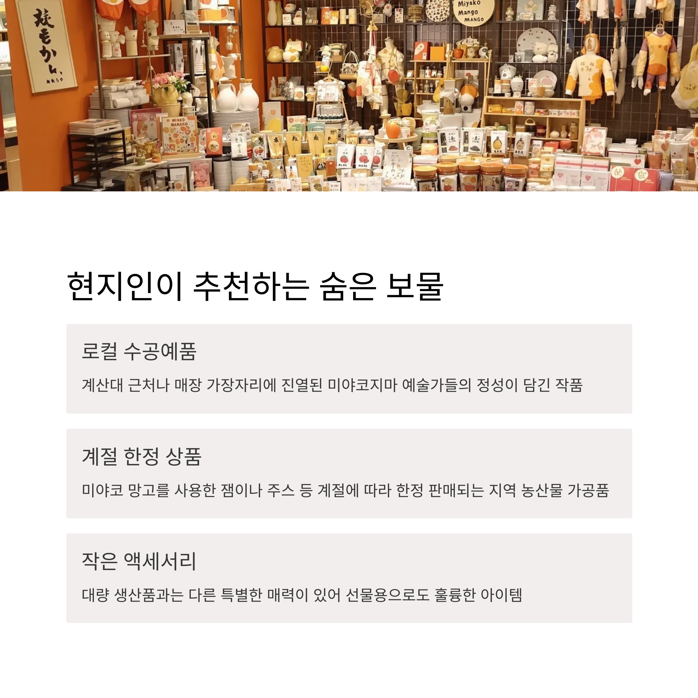"많은 관광객분들이 유명 브랜드나 잘 알려진 특산품에 집중하시지만,
