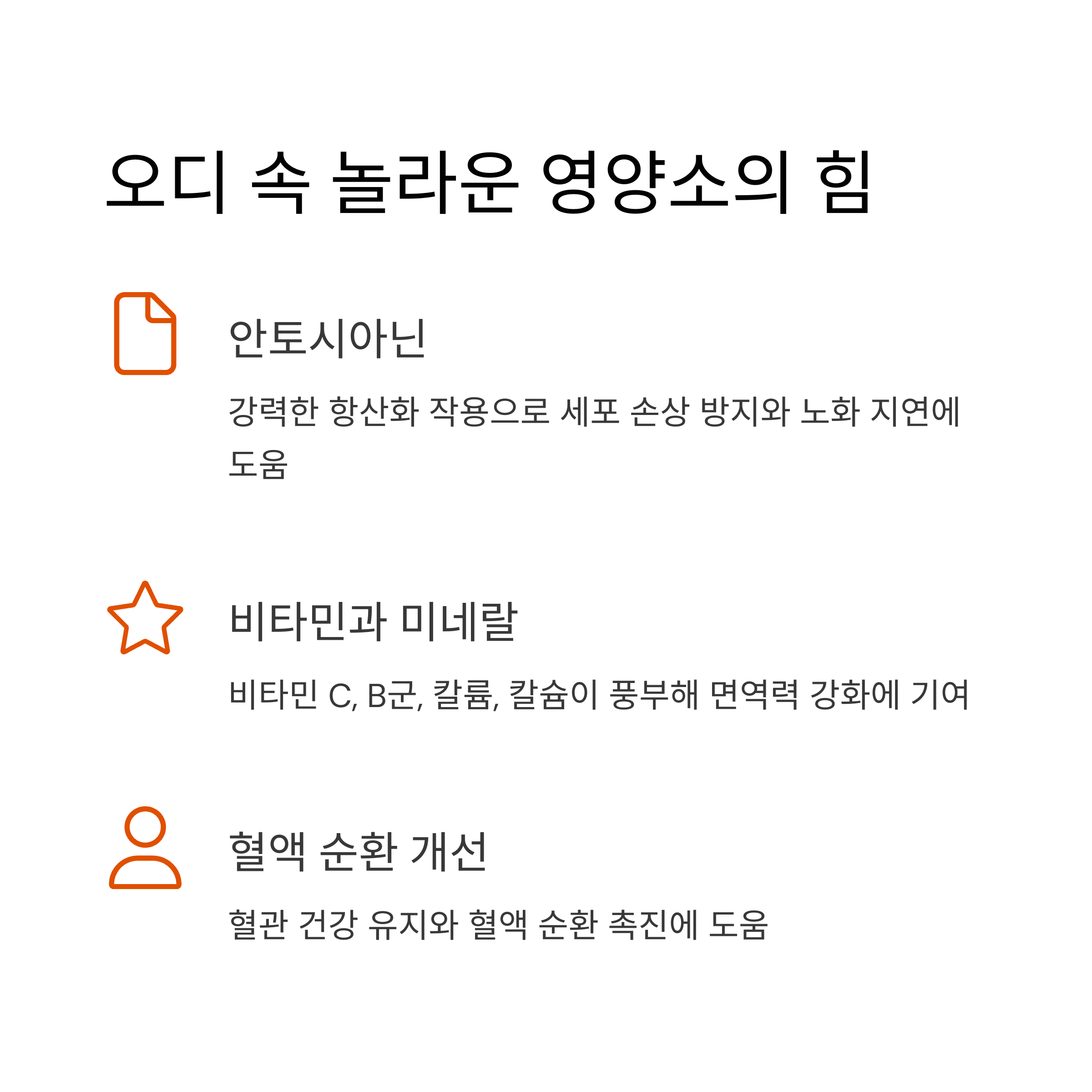 오디에는 우리 몸에 유익한 다양한 영양 성분이 풍부하게 함유되어 있습니다. 특히 주목할 만한 성분은 안토시아닌인데, 이는 강력한 항산화 작용을 하는 것으로 알려져 있습니다. 전문가들은 이러한 항산화 성분이 세포의 손상을 막고 노화를 늦추는 데 긍정적인 역할을 할 수 있다고 설명합니다. 또한 오디에는 비타민 C와 비타민 B군, 그리고 칼륨, 칼슘과 같은 미네랄도 다량 포함되어 있어 신체 기능 유지와 면역력 강화에 도움을 줄 수 있습니다. 혈액 순환 개선 및 혈관 건강 유지에도 이로운 영향을 미칠 수 있다는 연구 결과도 있습니다. 이처럼 오디의 중요한 영양 성분들은 우리 몸의 전반적인 건강 유지에 기여할 수 있는 잠재력을 가지고 있습니다.