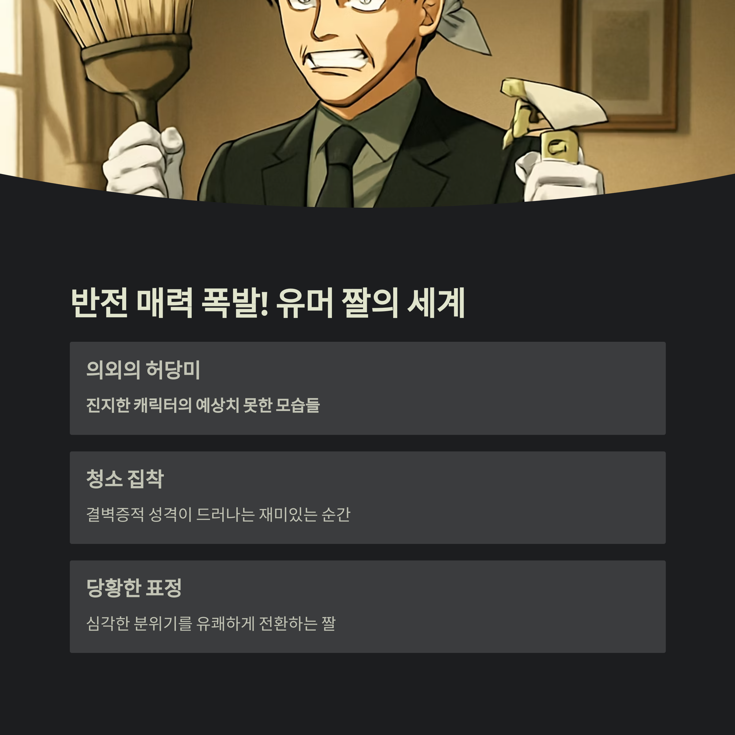 청소에 집착하는 모습이나, 예상치 못한 상황에서 당황하는 표정 등은.