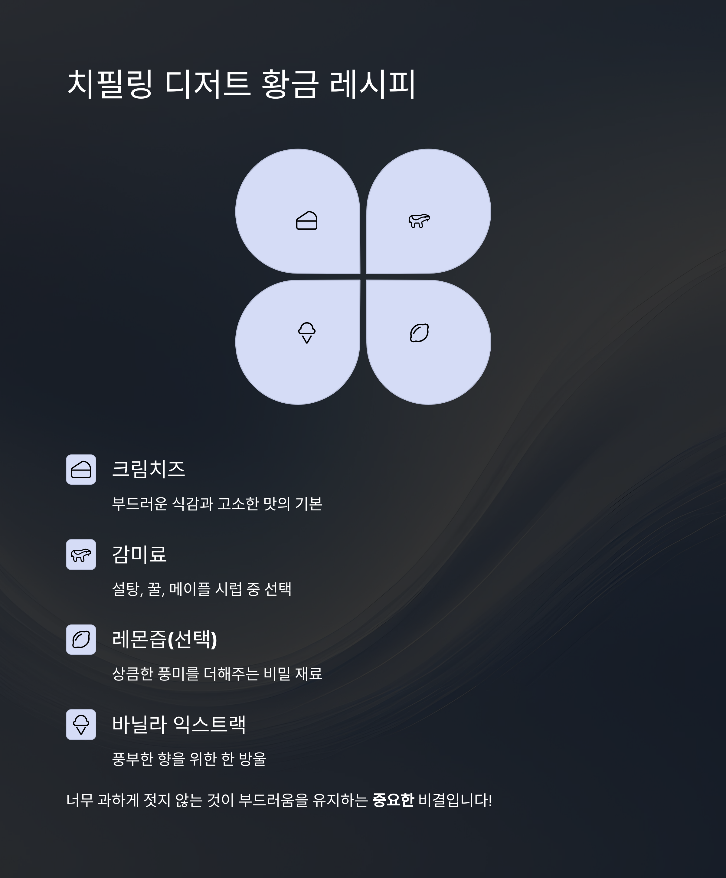 치필링 디저트를 위한 핵심 재료와 유용한 팁