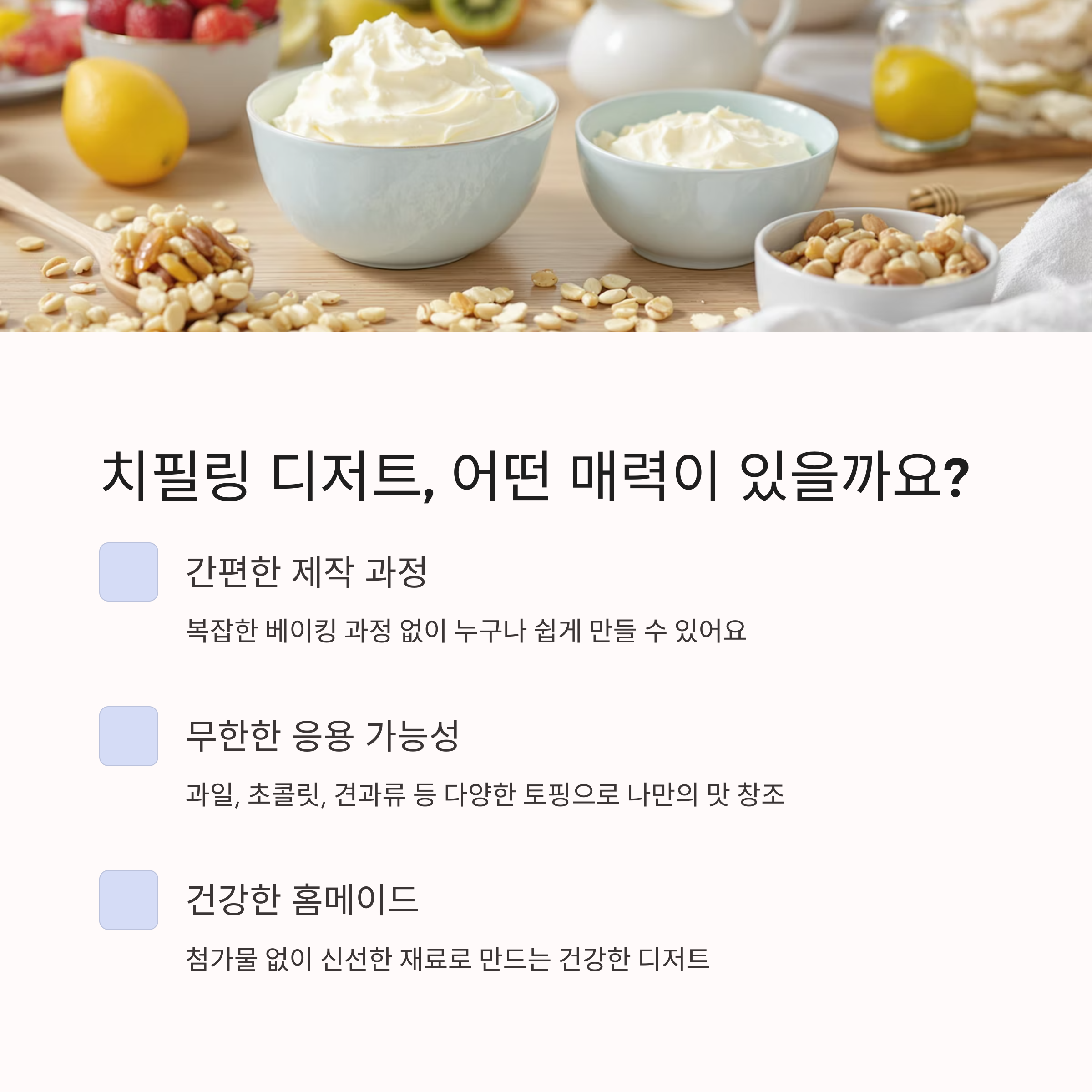 치필링 디저트 완성까지, 즐거운 시간 여행
