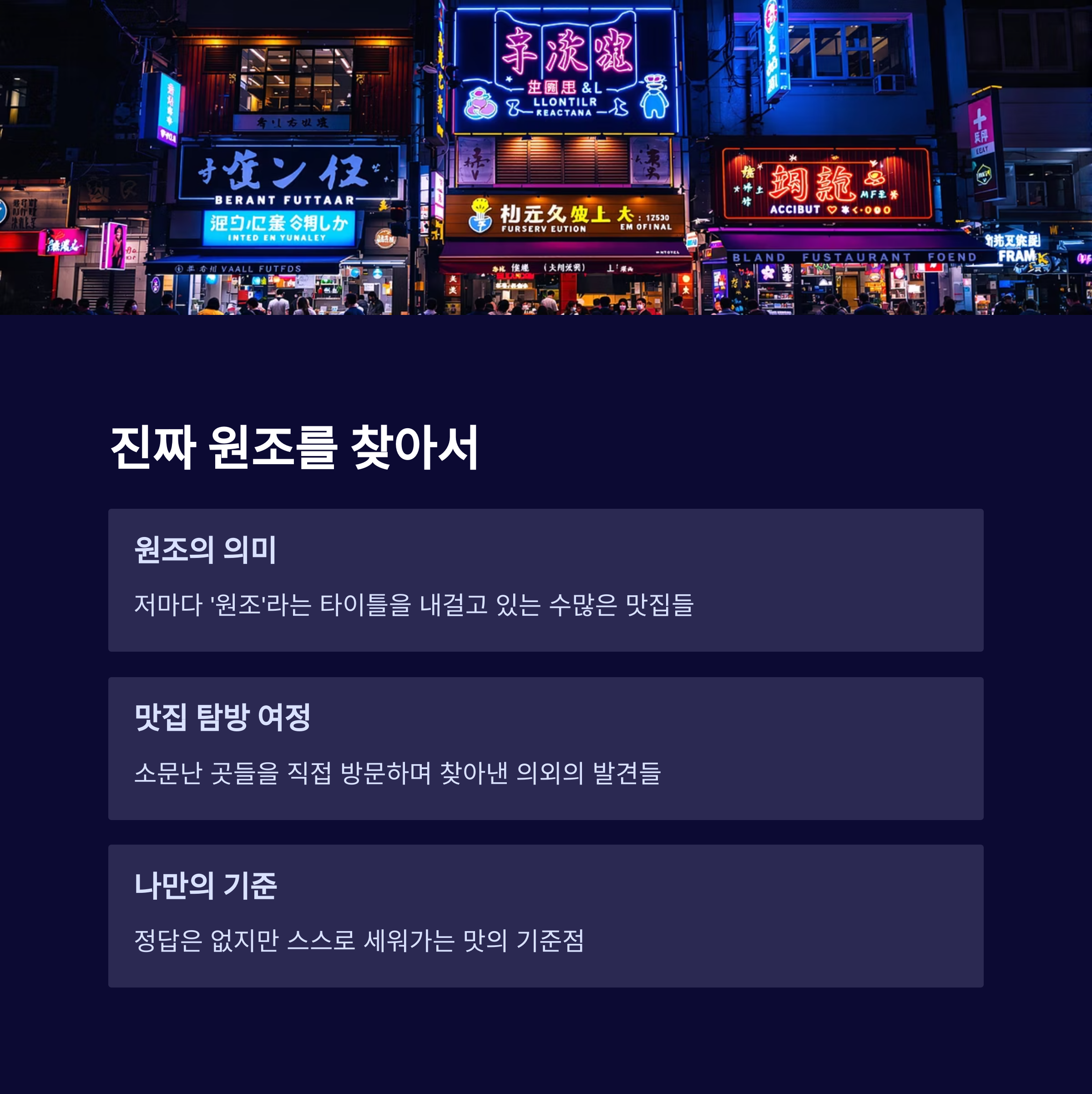 세상에는 수많은 쯔란윙봉 맛집이 있고, 저마다 '원조'라는 타이틀을 내걸고 있습니다. 과연 진짜 원조는 어디일까요? 이 질문에 대한 답을 찾기 위해 저는 긴 탐방 여정을 시작했습니다. 어떤 기준으로 맛집을 선정해야 할지, 또 어떤 점을 중요하게 평가해야 할지 고민이 많았습니다. 소문만 무성했던 곳에서 실망하기도 하고, 기대하지 않았던 곳에서 의외의 맛을 발견하기도 했습니다. 원조 논쟁에 대한 정답은 없겠지만, 저만의 기준을 세워가는 과정이었습니다.