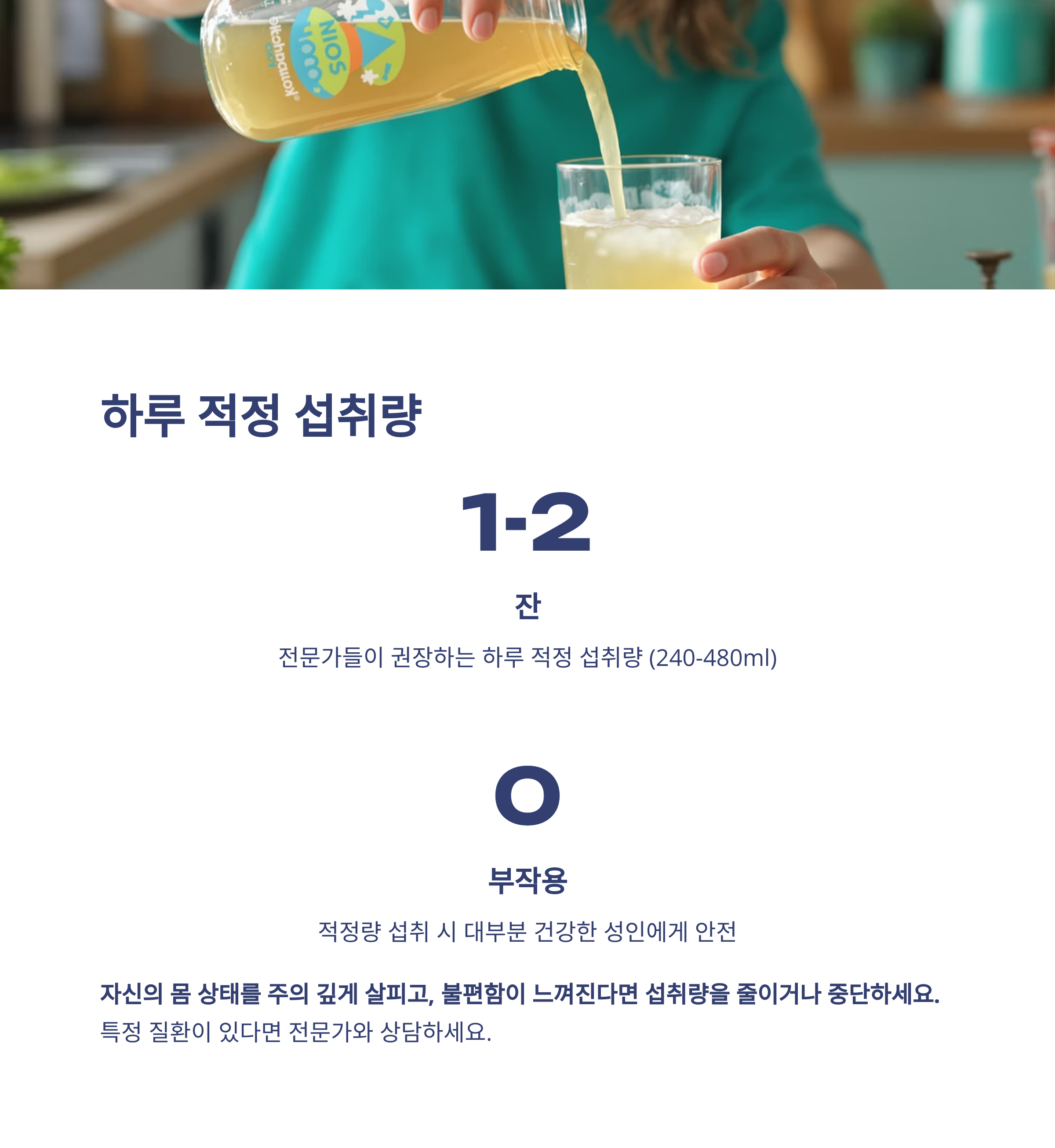 핵심은 콤부차도 과유불급, 적당량 섭취가 중요합니다.